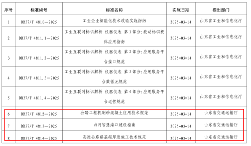 我省交通运输标准建设取得新进展发表时间:2025-02-28 10:17 近日,山东省市场监督管理局印发《关于批准发布<工业企业智能化技术改造实施指南>等31项山东省地方标准的公告》(〔2025〕1号),其中《沥青路面就地冷再生技术规范》、《内河智慧港口建设指南》等7项地方标准由省交通运输厅提出并组织实施,数量居各提出部门首位。标准涉及绿色交通、智慧交通等多个重点领域,标志着我省在推动智慧交通与绿色交通标准体系建设方面取得了新的突破。